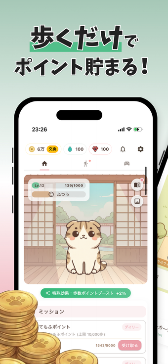 Med en unik samarbetsfunktion kan användare gå tillsammans med vänner för att samla poäng gemensamt. もふポ erbjuder också en spelkomponent där användare kan tjäna poäng genom att spela spel och utföra olika uppdrag. Poängen kan enkelt bytas mot digitala gåvor, presentkort och elektroniska pengar, vilket gör denna app till ett roligt sätt att tjäna en extra slant.